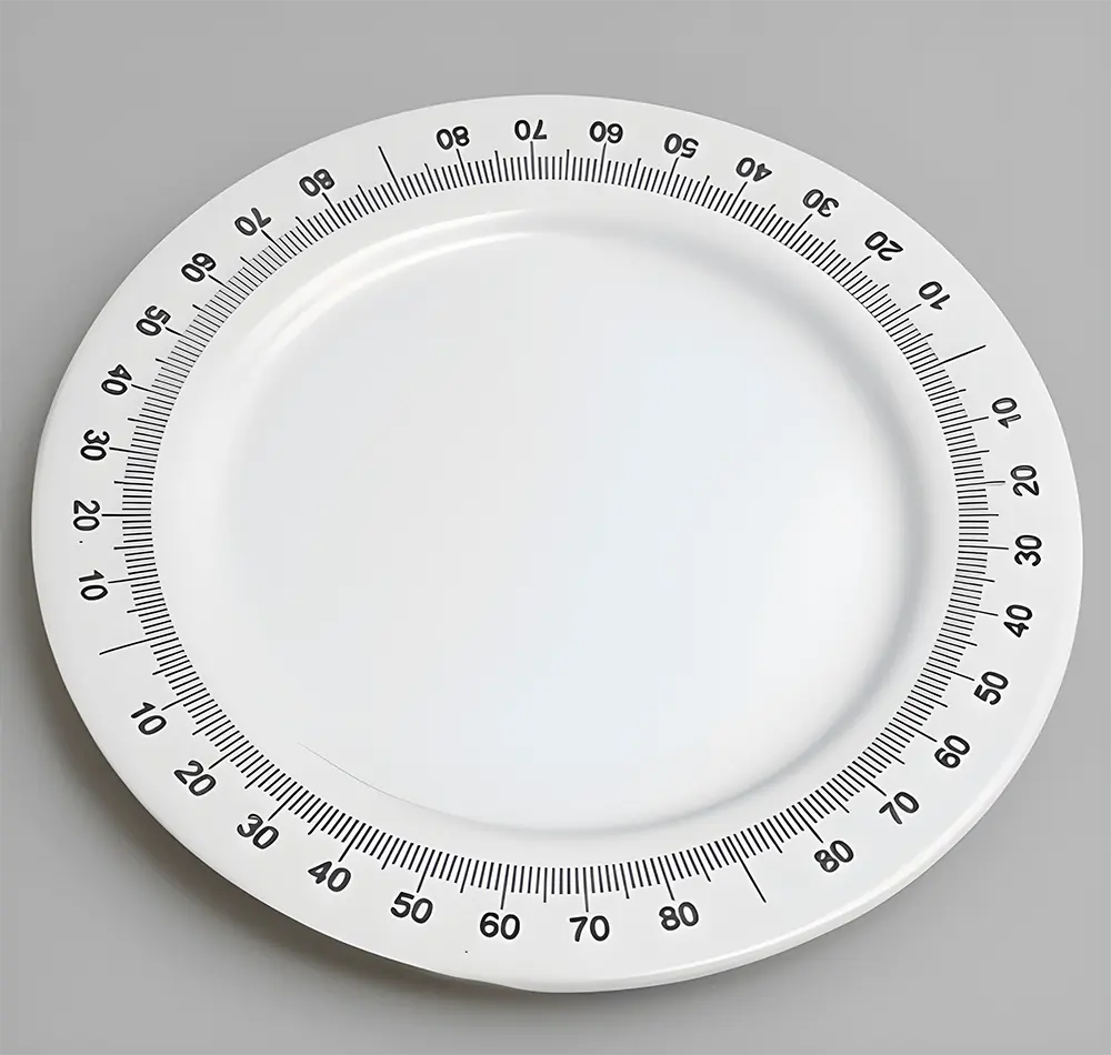 The plate is a fusion of mathematical design and culinary art, featuring graduated divisions inspired by angles, circles, and proportions. It invites a visual and practical exploration of food, enabling perfectly calculated portions and creative presentations. Ideal for those who appreciate details and the harmony between form and function.