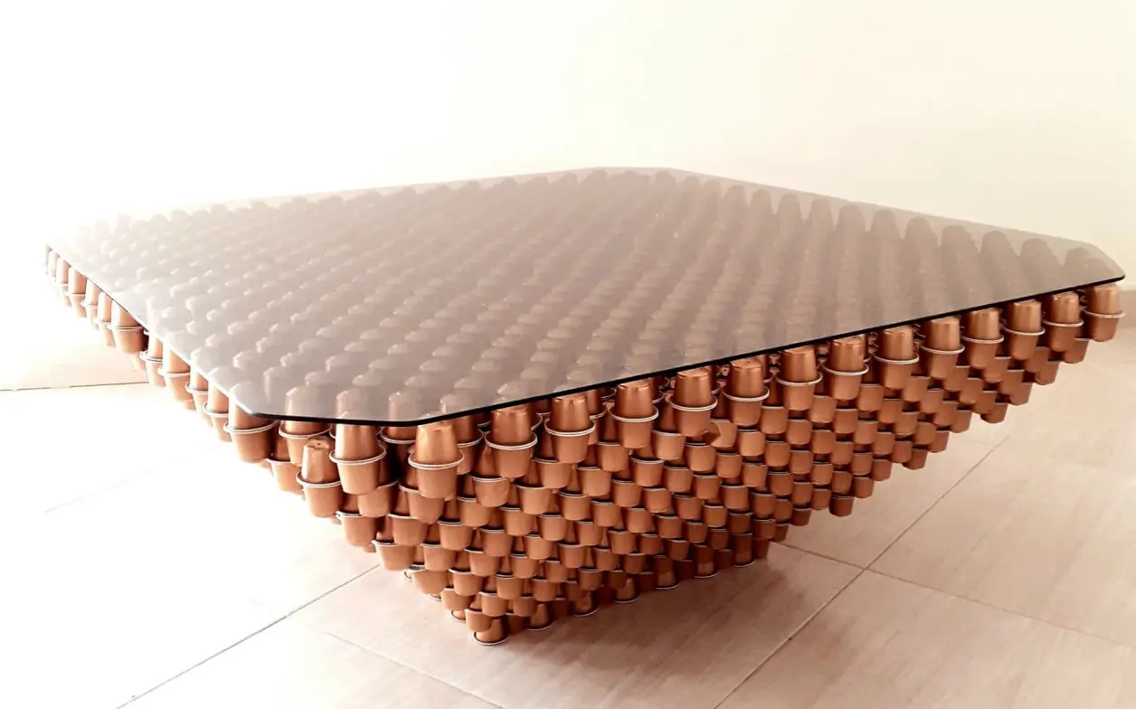 Your table goes beyond a functional piece of furniture – it is a statement of sustainability and creativity. Made with used coffee capsules, it symbolizes the transition from disposable to durable, from the mundane to the extraordinary. Each capsule, once destined for the trash, gains new life, incorporating unique memories and colors into the final design.